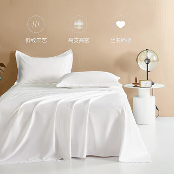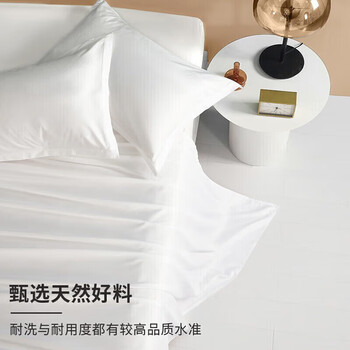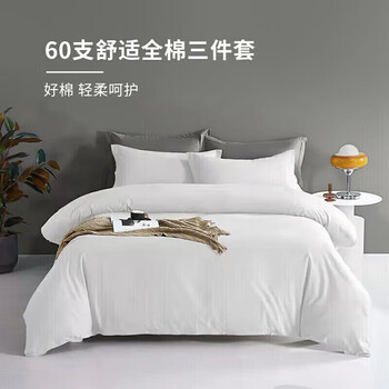 源生活 纯白色酒店三件套 单人床100%全棉白色床单被套0.9-1.2米床