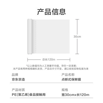 京东京造 保鲜膜食品级 点断式大号 耐高温 【120米×30cm】