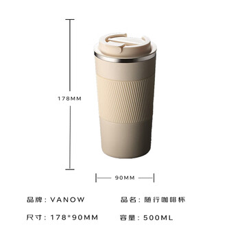 Vanow保温杯咖啡杯陶瓷内胆男女学生便携车载年会定制刻字水杯子