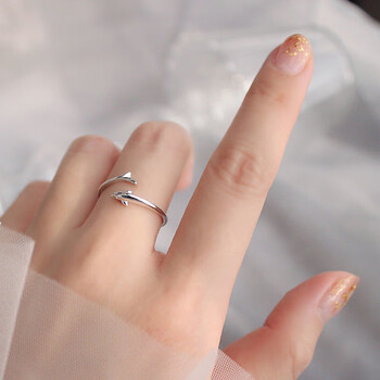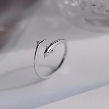 缔晶 小鱼925银戒指女士活口韩版时尚饰品单身尾戒女生食指戒子简约小众设计学生闺蜜指环