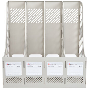 齐心(COMIX)四联桌面文件框 四栏带标签稳固耐用文件栏/文件筐/资料框 办公用品 灰色B2174