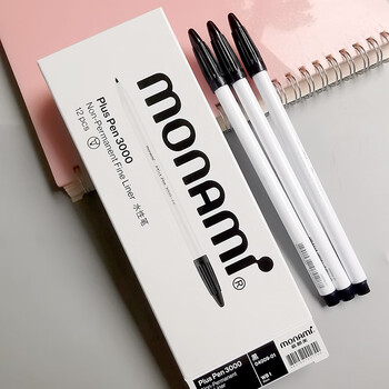【开学必备】慕那美(monami)新P3000纤维笔水性笔中性笔勾线笔手帐笔学生用水笔 黑色12支装04008/04009-01
