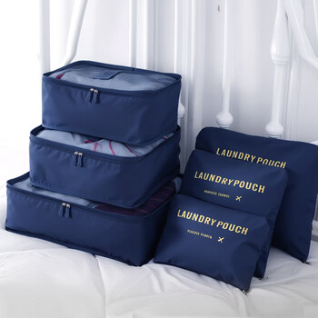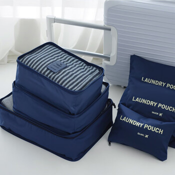 欣沁 洗漱收纳套装洗漱收纳袋李箱衣物整理袋收纳包6件套装 藏青色
