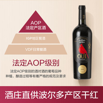 卡伯纳法国原瓶进口伊甸园波尔多AOC干红葡萄酒750ml*6年货红酒木盒送礼