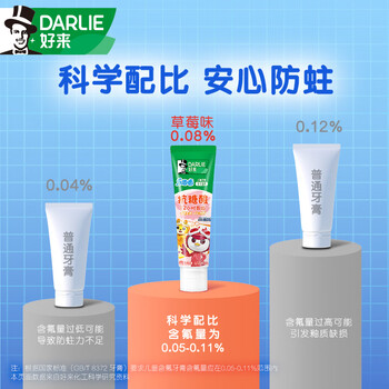 DARLIE好来(原黑人)乐固齿儿童牙膏2-3-6-12岁草莓味60g防蛀抗糖