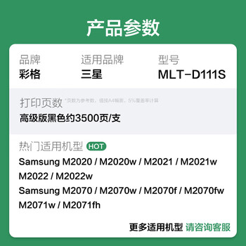 彩格MLT-D111S硒鼓大容量4支装适用三星M2020 M2021 M2070 M2071打印机M2020W M2022W M2070FW M2071FH粉盒易加粉