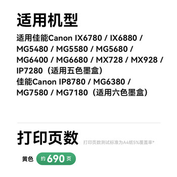 彩格CLI-851XL墨盒 适用佳能IX6780 IX6880 IP8780 7280 MG7580 6400 6380 7180 MX928打印机墨水PGI-850 黄色