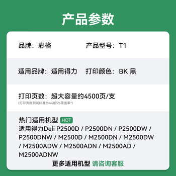 彩格T1硒鼓 适用得力P2500D P2500DN P2500DW/DNW M2500AD M2500ADN M2500ADW/ADNW/D/DN/DW打印机墨盒碳粉
