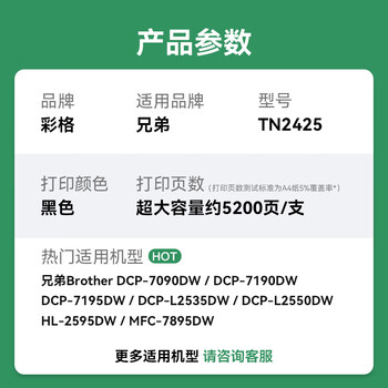 彩格TN2425粉盒适用兄弟DCP-7190DW 7090DW打印机墨盒 L2550dw L2535dw碳粉盒7195dw 7895dw硒鼓 大容量粉盒4支