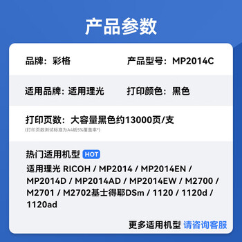 彩格适用理光2014粉盒MP2014c型墨粉ricoh MP2014AD/EN/EW/D M2700 2701 2702打印机硒鼓碳粉盒基士得耶dsm1120d