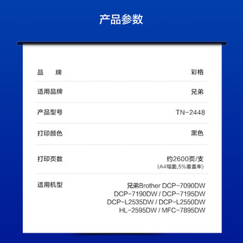 彩格TN2448碳粉适用兄弟DCP-7190DW 7090DW打印机墨粉盒 L2550dw L2535dw碳粉盒7195dw 7895dw打印机硒鼓碳粉6支