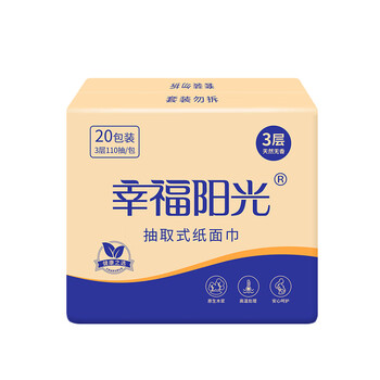 幸福阳光抽纸 经典系列 3层110抽*20包餐巾面巾擦手纸巾