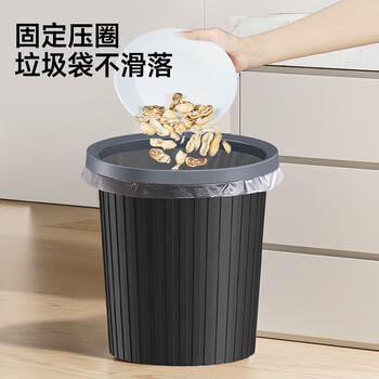 五月花压圈垃圾桶直投11L大容量黑色加厚桶身家用厨房厕所办公宿舍纸篓