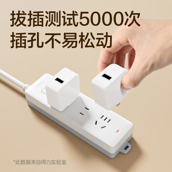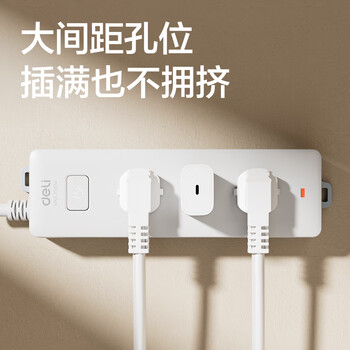 得力(deli)3C认证国标安全插座 插排/插线板/接线板/排插/拖线板 儿童保护门 总控开关 3位2米 18273