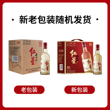 红星二锅头大曲酿 清香型白酒纯粮 52度500ml*6瓶整箱装 新老包装随机