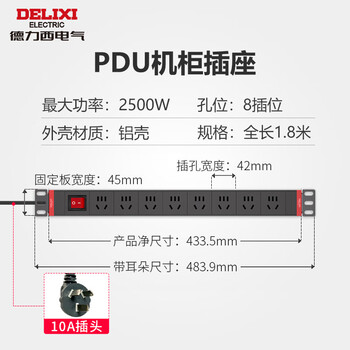 德力西(DELIXI)PDU机柜桌面电竞插座/插线板/插排/排插/接线板/拖线板 8位总控开关全长1.8米