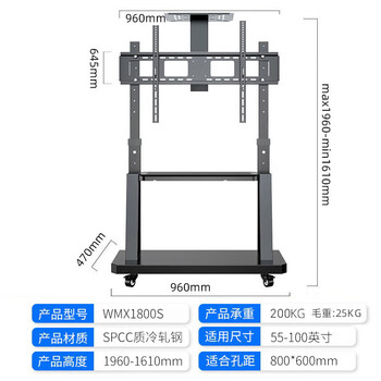 贝石移动电视支架55-100英寸电视机大屏落地挂架一体机架子电视推车适用于海信等视频会议架