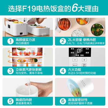 生活元素(LIFE ELEMENT)电热饭盒 智能全自动便当 大容量陶瓷内胆 密封保鲜防漏 双层 插电加热保温饭盒-F19