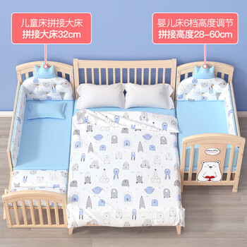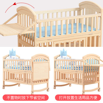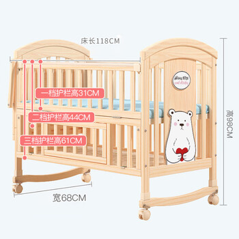 ANGI BABY婴儿床原木无漆多功能带尿布台宝宝床可移动摇床可拼接加长儿童床