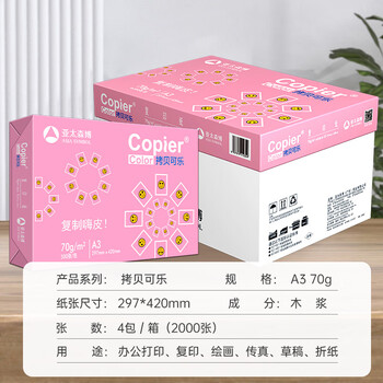 亚太森博拷贝可乐A3打印纸 70g500张*4包 绘图复印纸 高品质办公用纸 整箱2000张【专业造纸厂牌】