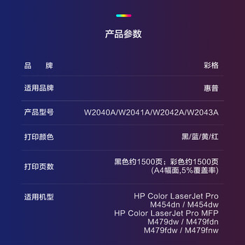 彩格W2040A黑色碳粉 适用惠普HP Color LaserJet Pro MFP M479dw M479fdn M479fdw M479fnw墨粉
