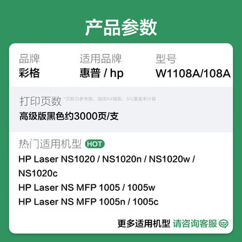彩格108a粉盒适用惠普NS MFP 1005w硒鼓hp 108a闪充粉盒NS 1020c 1020n NS MFP 1005 1005c w1108a智能闪充墨粉盒