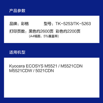彩格TK-5253黑色粉盒 TK5263墨盒 适用京瓷Kyocera ECOSYS M5521 M5521CDN M5521CDW 5021CDN复印机碳粉盒