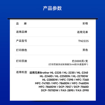 彩格TN2225碳粉适用兄弟MFC7360 7470D 7860DN硒鼓DCP7057 7060D 2890HL2240D 2250DN TN2215 TN420打印机墨盒6瓶