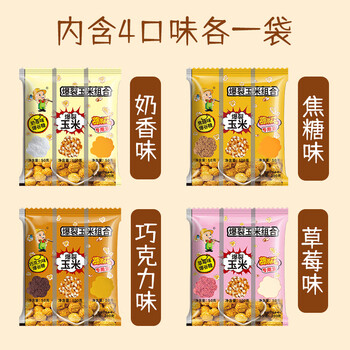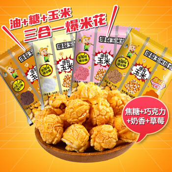 沐谷 爆米花玉米粒三合一200克*4袋 焦糖巧克力奶香草莓四口味DIY原料