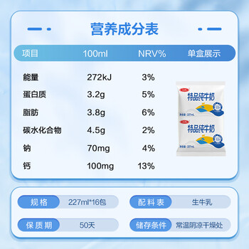 三元特品纯牛奶整箱227ml*16包 枕包 营养早餐伴侣 整箱送礼