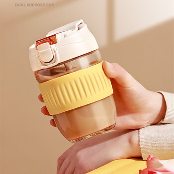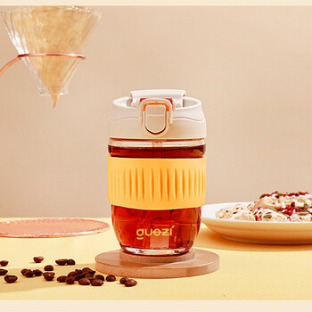 果兹GUOZI 双饮口玻璃咖啡杯GZ-J013/清新白 高颜值玻璃杯男女夏季办公室茶杯车载便携水杯果饮吸管杯子