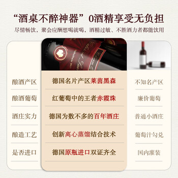 达颜无醇葡萄酒德国原瓶进口红酒0度零度脱醇无酒精婚姻热门商品单支