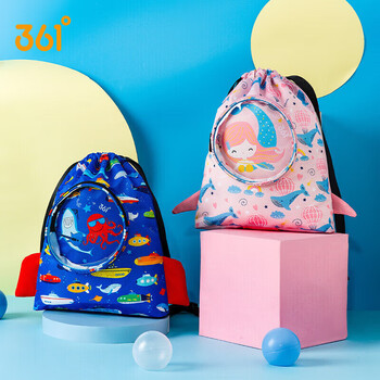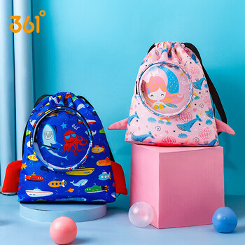 361°男女儿童游泳包干湿分离防水收纳袋宝宝专用双肩包 彩蓝海底世界