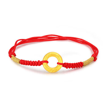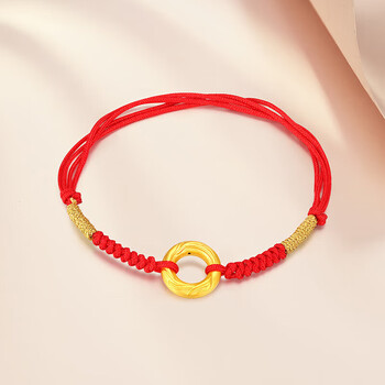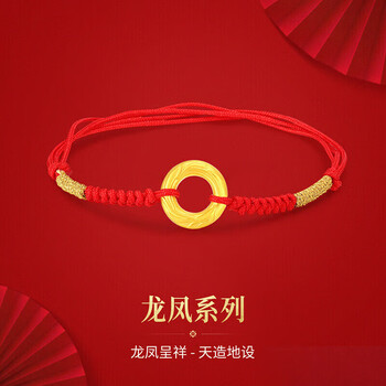 梦金园黄金转运珠龙鳞凤尾足金平安扣3D硬金情侣手链
