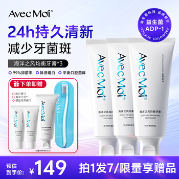 Avec Moi海洋之风 益生菌均衡牙膏家庭套装*3支(清新口气 牙齿清洁 )