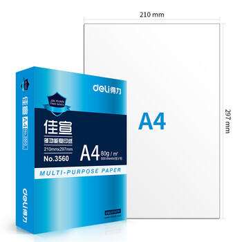 得力(deli)佳宣复印纸3561a4打印纸a4纸加厚打印白纸80g办公用纸草稿纸绘画纸A4纸5包(整箱2500张)
