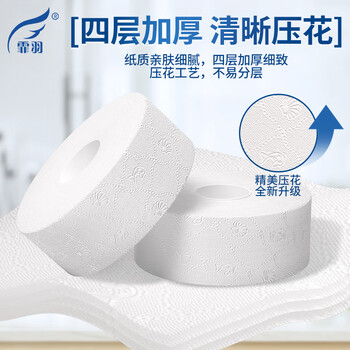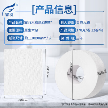 霏羽:ZB007压花大卷纸 品名:大盘卫生纸 成分:原生木浆 数量:12卷/箱 层数:4层