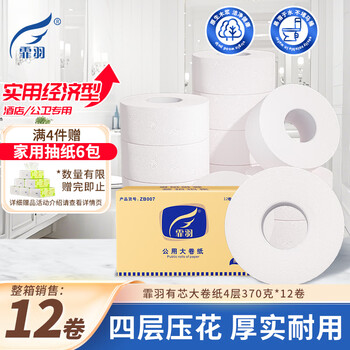 霏羽有芯大卷纸商用4层370克*12卷整箱大盘纸大圈卫生纸酒店厕纸ZB007