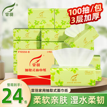 霏羽抽纸3层100抽*24包家用抽取式餐巾纸家庭装面巾纸实惠装清洁用纸