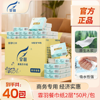 霏羽餐巾纸2层50片*40包整箱商用方形230*230纸巾酒店餐厅面巾纸F230