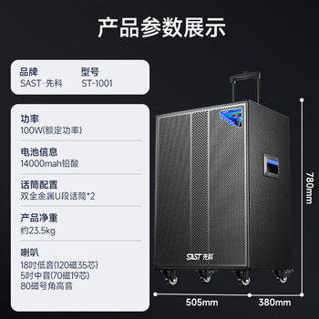 先科户外广场舞拉杆便携音响超大音量大功率移动蓝牙会议k歌专用18吋重低音演讲带话筒ST-1001
