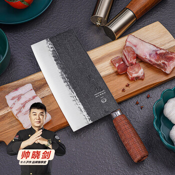 十八子作锻打专业厨师刀具 花梨木菜刀匠品1号斩切刀S336-W1【彩盒装】