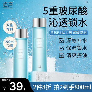 透真玻尿酸爽肤水200ml*2 补水保湿柔肤化妆护肤精华水 收缩毛孔
