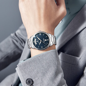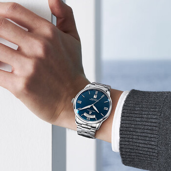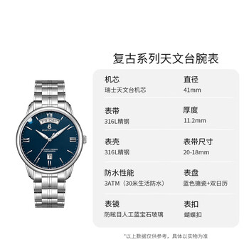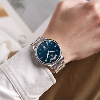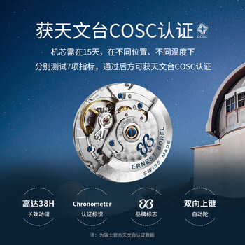 依波路(ERNEST BOREL)瑞士手表男 新春礼物 天文台认证机械男表双日历夜光钢带蓝盘男表