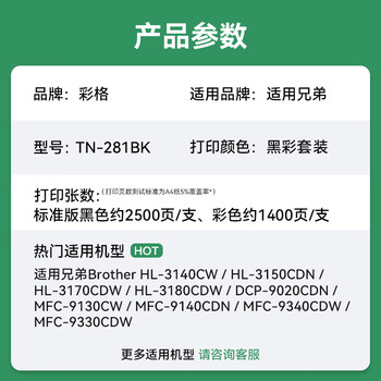 彩格TN281四色粉盒套装 适用兄弟HL3170CDW DCP9020 9140 hl3150cdn TN-285 HL-3140 9020 MFC9130 9330 9340