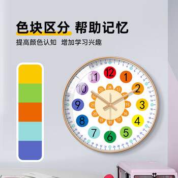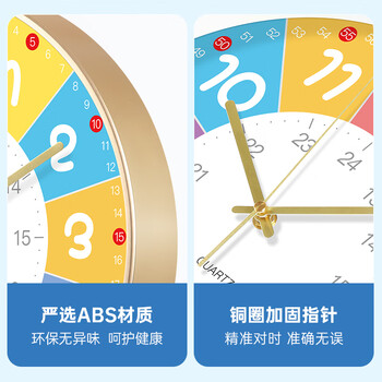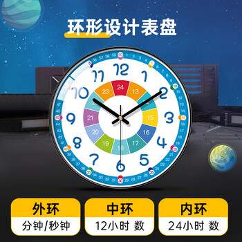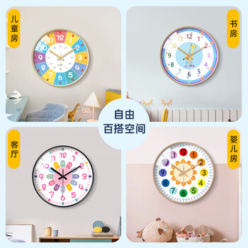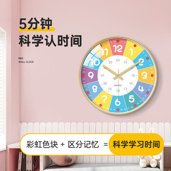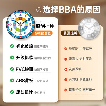 BBA挂钟儿童房早教学习卡通钟表家用卧室教室创意时钟 黑色30cm
