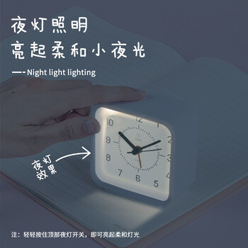 得力(deli)方形指针式闹钟夜灯卧室床头钟学生起床神器开学升学必备 白8851开学开学季新年礼物