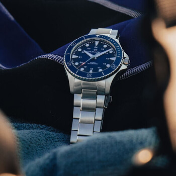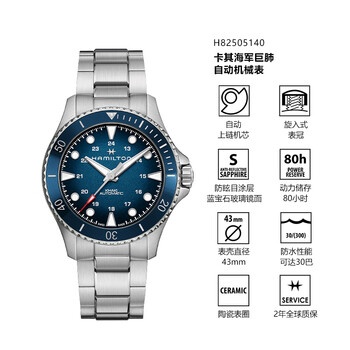 汉米尔顿(Hamilton)汉密尔顿男士手表机械表瑞表 卡其海军巨肺43蓝盘钢带潜水表礼物