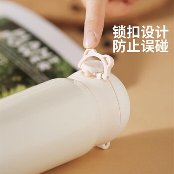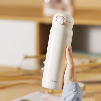 杯具熊(BEDDYBEAR)弹盖直饮保温杯316不锈钢男女便携水杯车载学生杯子470ML月牙白