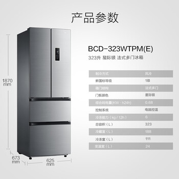 美的(Midea)323升一级能效变频多门双开门风冷无霜超薄四开门电冰箱BCD-323WTPM(E)